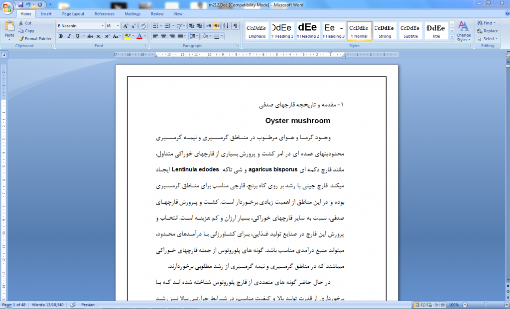 پروژه کارآفرینی تولید قارچ خوراکی پروژه جدید با فایل ورد