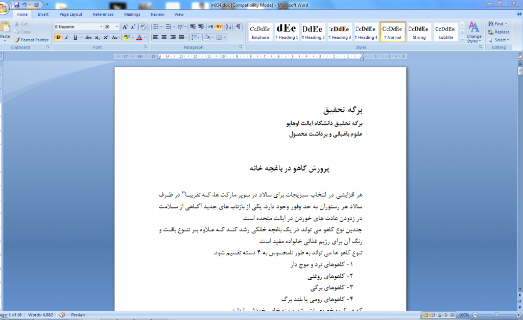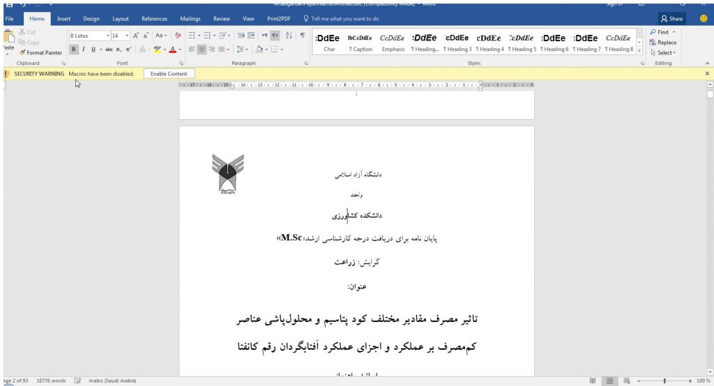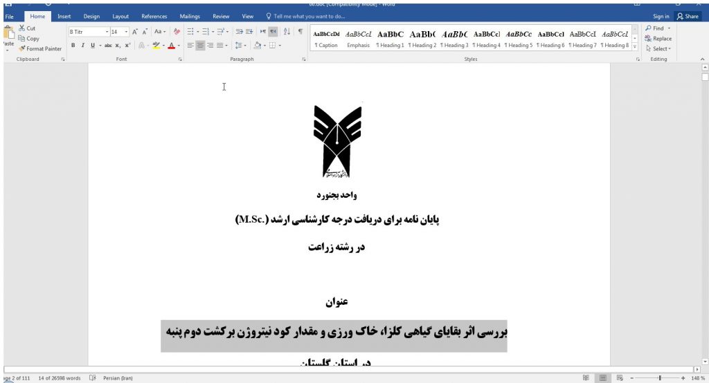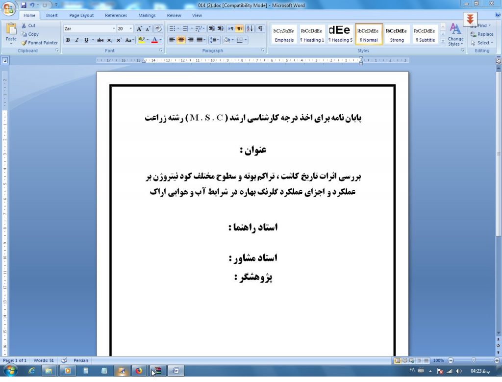 پايان نامه براي اخذ درجه کارشناسي ارشد ( M . S . C ) رشته زراعت