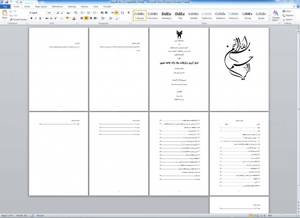 گزارش کار اموزی جمع آوري و بازيافت مواد زائد جامعه شهري