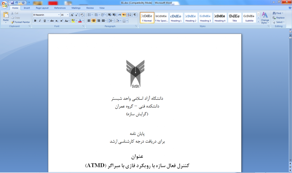 پایان نامه کارشناسی ارشد کنترل فعال سازه با رویکرد فازی با میراگر ATMD
