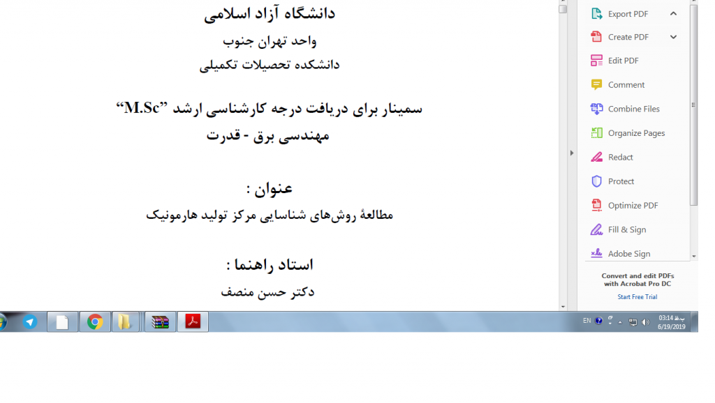 سمینار کارشناسی ارشد موضوع مطالعه روشهاي شناسايي مركز توليد هارمونيك رشته برق – قدرت